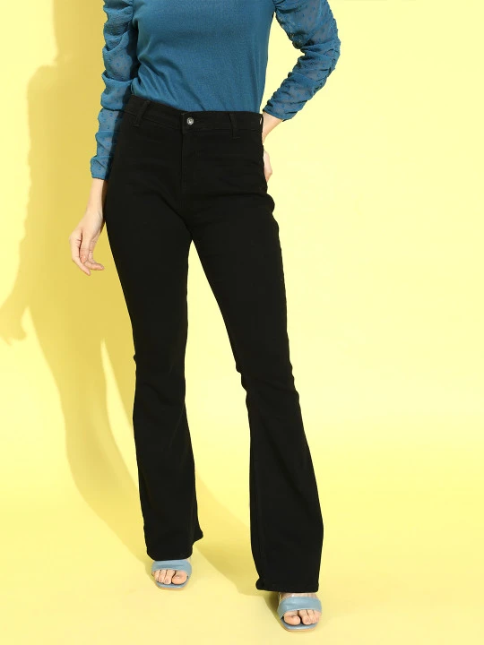 Move from day to night with ease when you don these stylish jeans. Enhanced with a bootcut fit, these jeans have a high-rise waist to accentuate your look.