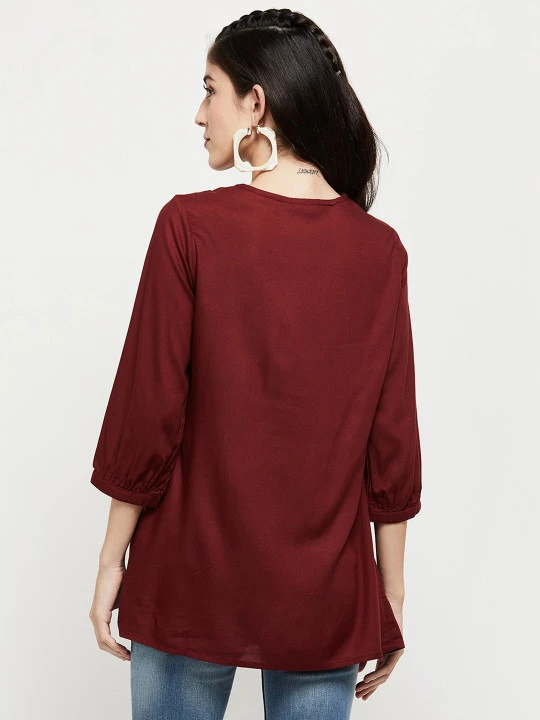 Blue embroidered tunic ,has a round neck, long sleeves, button closure