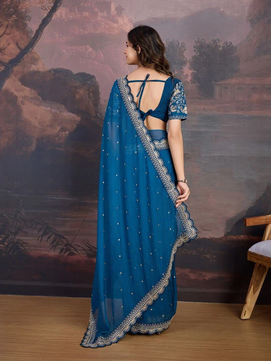 The blouse worn by the model could be for modelling purpose only, please check the image of the actual blouse piece