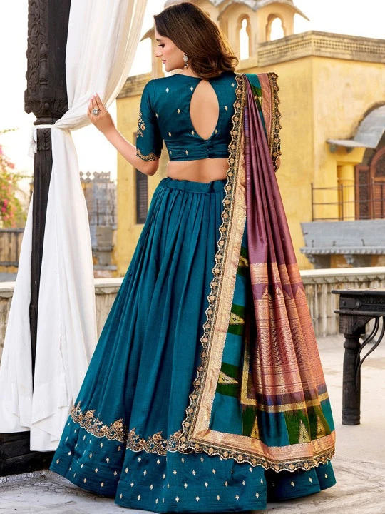 Teal Embroidered lehenga choli With Dupatta, Thread Work